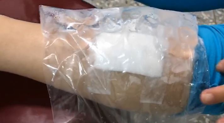 ▼女子腿部遭蜂炮炸傷經過包紮。(圖/東森新聞)