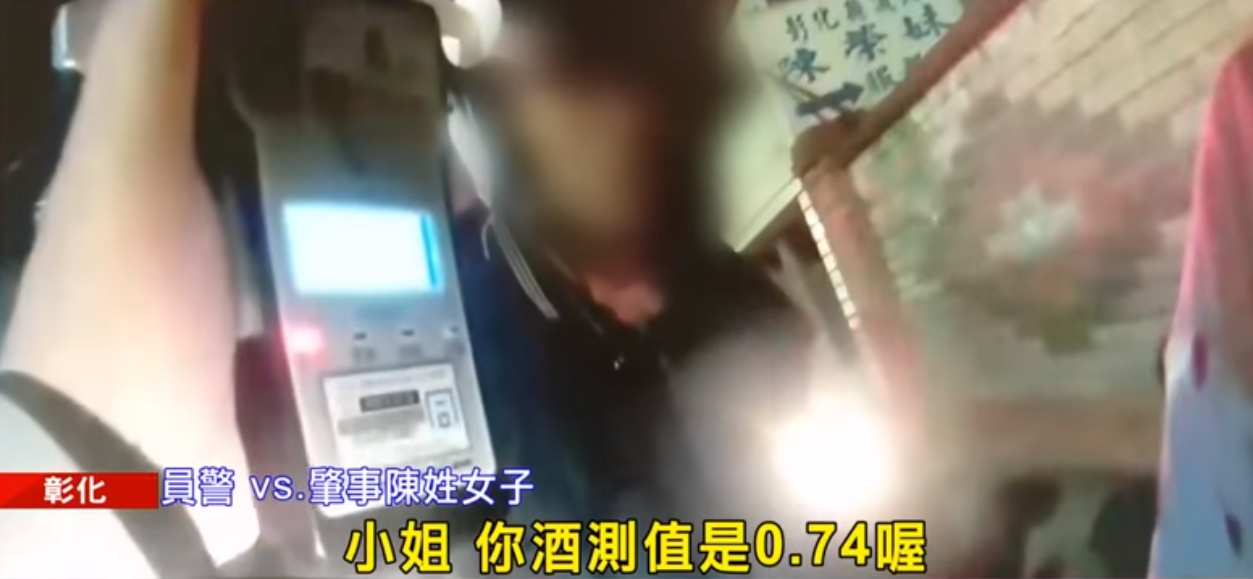 員警vs.肇事陳姓女子:「再來再來再來,好,謝謝,小姐!你酒測值是0.74喔,超過標準,標準值是0.15,超過0.25就是已經在公共危險範圍內。」