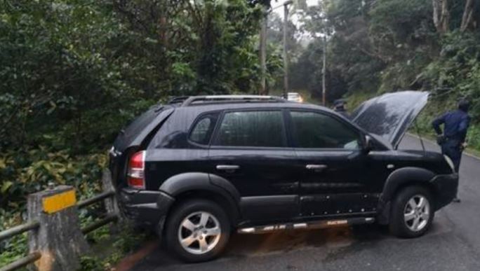 山區道路黑色轎車,原本要賞花,卻意外發生死亡車禍,事故後停在路邊,警方到場調查,現場還有一輛轎車也慘遭波及被撞歪,當時肇事黑色轎車駕駛,他撞死的不是陌生人,是自己的結髮妻子,當下跪在地上痛哭失聲。