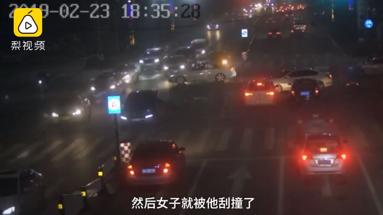 據《梨視頻》報導,上(2)月23日傍晚6點30分左右,一名女子竟在十字路口中央燒金紙,當時正值下班時間,路上車來車往,汽車不停從女子身旁呼嘯而過,畫面十分驚險,而她也造成了嚴重的交通阻塞,從監視畫面可以看到,女子蹲在地上,下秒一輛左轉而來的汽車直接將她撞倒。