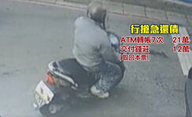 因為投資手機生意失利,只能向地下錢莊借錢,最後利滾利,積欠的上百萬,他只能鋌而走險行搶銀行,雖然還了33萬,但行搶得來的不法所得,最後還是會被警方追回,這下債還不成,更吃下搶奪重罪。