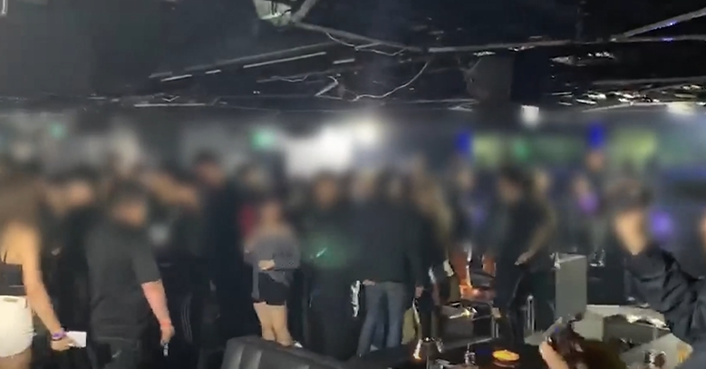夜店裡沒跳舞沒喝酒,不少女生穿著熱褲背心參加背心趴, 踩著高跟鞋 乾瞪眼,男男女女拿出證件等著警方查驗身分。