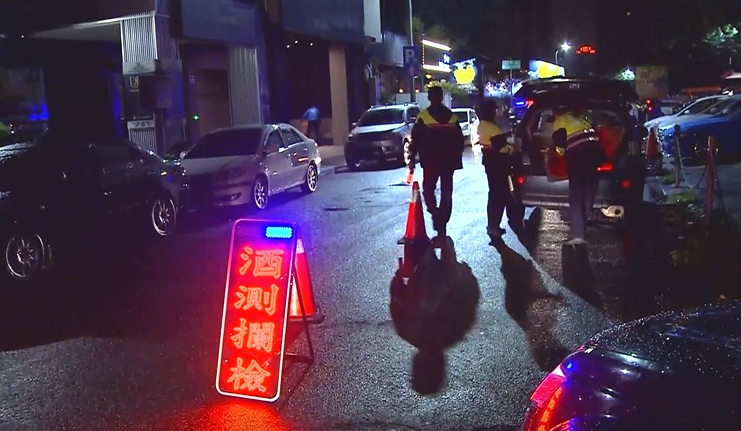 不只夜店內臨檢,附近路口,警方也設下酒測攔檢點,駕駛停車受檢,防酒駕從夜店周邊滴水不漏。
