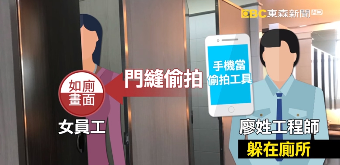 原來當時這位廖姓工程師,早就躲在廁所內,等到女員工一進廁所,趁機從門縫偷拍如廁畫面,不過女員工機警揪住他,警方到場後,的確有許可疑照片,懷疑不只一人受害。