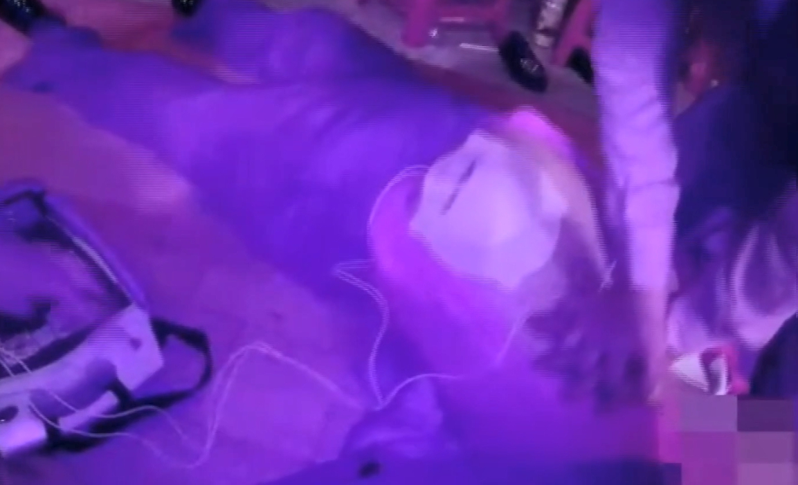 ▼一名舞者不慎失足重摔倒地,幸好派出所就在旁邊,警方緊急使用AED急救。(圖/東森新聞)