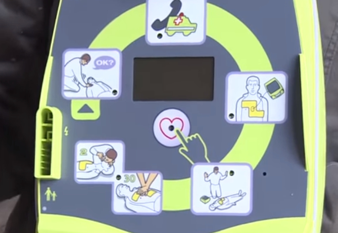 很多公共場合有設置AED,遇上有民眾暈倒,保持冷靜、分工合作,一人報警,一人CPR,找到AED後,聽從AED指示操作。