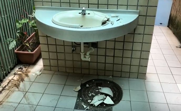 ▼整間廁所能砸的能拆的通通沒放過,維修費預估很高。(圖/東森新聞)