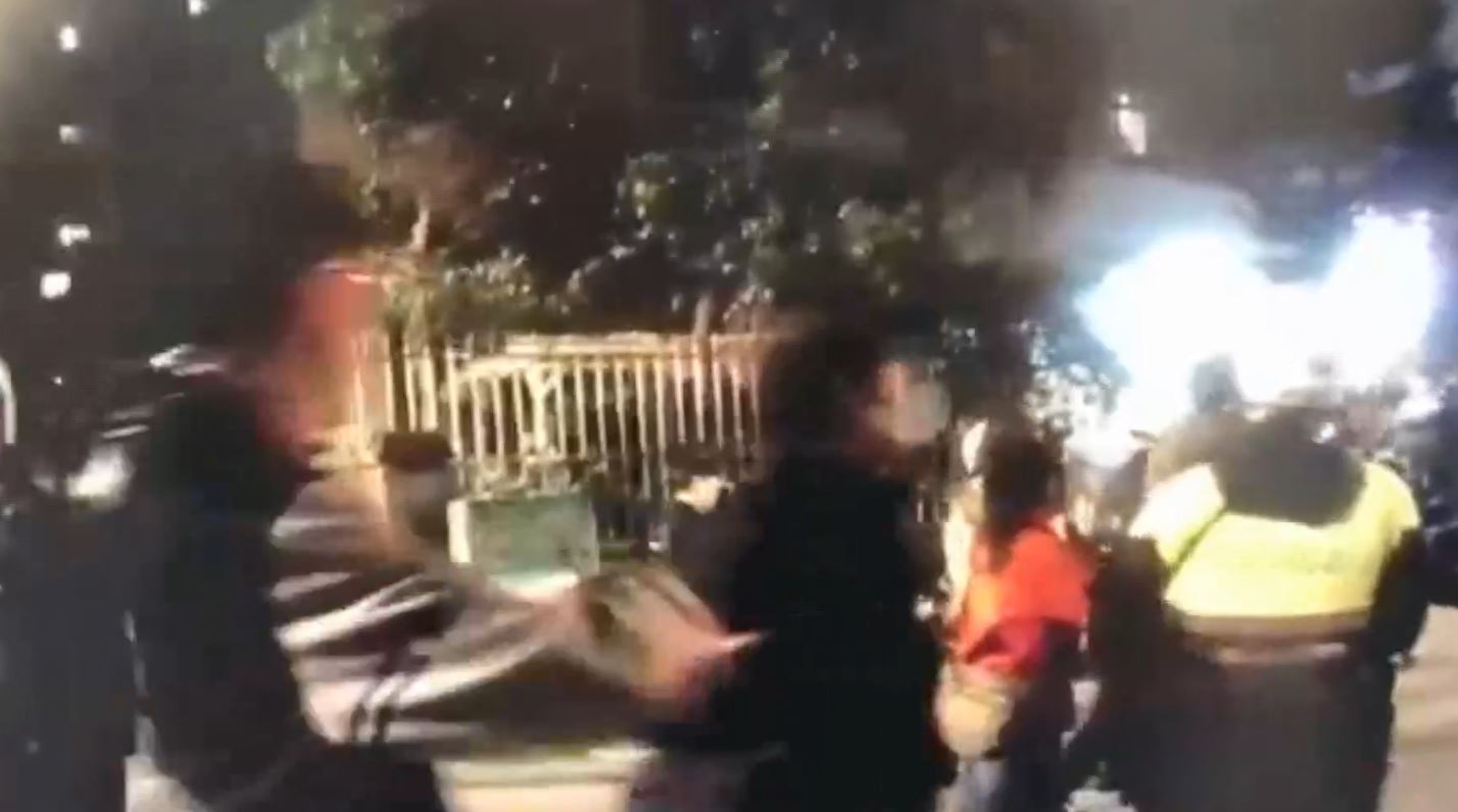 警方接獲通報,動員30多名警員,1分鐘內抵達現場,到達現場時,雙方還是持續嗆聲,不停推擠拉扯。