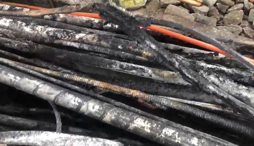 ▼電纜線疑似遭破壞導致號誌故障,甚至冒煙。(圖/東森新聞)