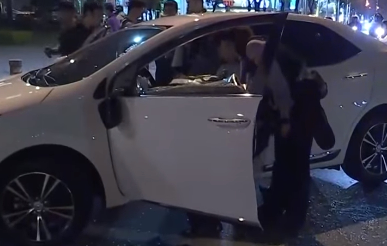 高雄街頭自小客,被一陣亂砸之後,車上傳出哀號聲,男子痛得連動都動不了。