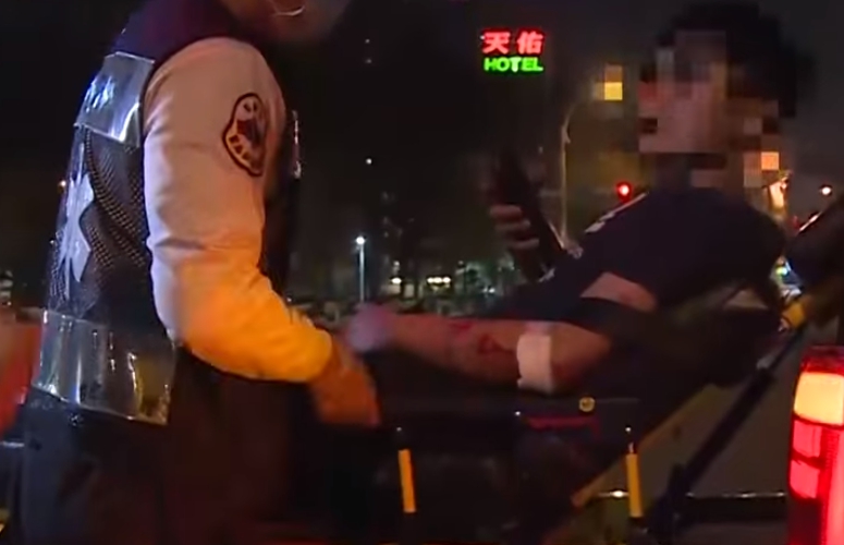 男子告訴警察全身都好痛,整隻手流血,腳也被打,救護車到場救護,男子還算清醒,簡單包紥上了擔架,緊急送醫。