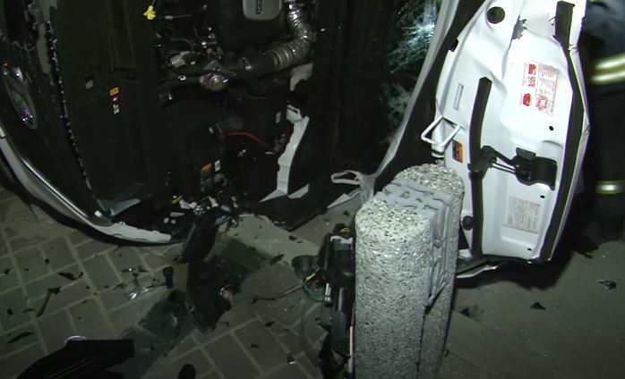 陳姓駕駛的白色休旅車,從翻車後情況看來,底盤幾乎全新,里程數只有3千多公里,車況相當地新,拖吊車將車子翻正,明顯看到右側車身被撞凹一塊,它的車頭引擎蓋掀起來,車窗擋風玻璃也破了個大洞。