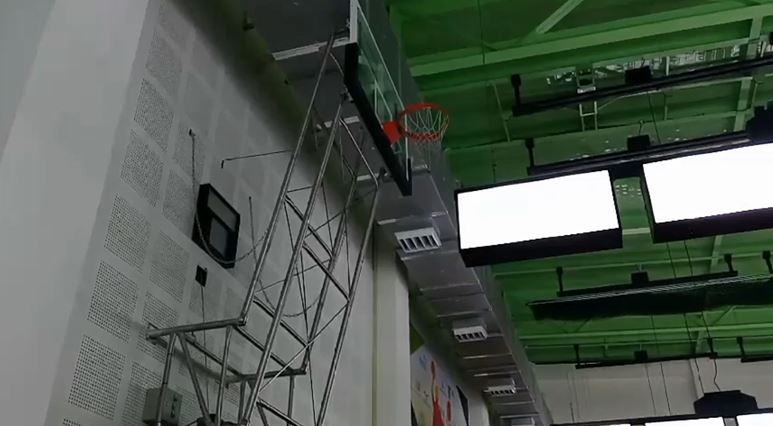 ▼運動中心將籃框收起高掛在牆壁上。(圖/東森新聞)