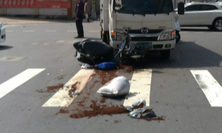 車禍現場,騎士載的園藝用土灑得滿地都是,有路人還一度以為是被撞的血跡,警方調查這起車禍肇事主因,就是駕駛闖紅燈。