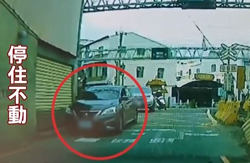 平交道警示燈已經亮起,車輛卻仍陸續通鐵路平交道,突然自小客車竟然停住不動柵欄緩緩下降,後方休旅車進退不得受困鐵軌上,畫面被Po上網,質疑自小客車駕駛惡意擋車,甚至還手伸出車窗,疑似比出不雅手勢接著迅速開走,情況緊急副駕駛座走出一名婦人趕緊扳開柵欄往上抬,休旅車時才能稍稍往前開,沒幾秒火車刷過。