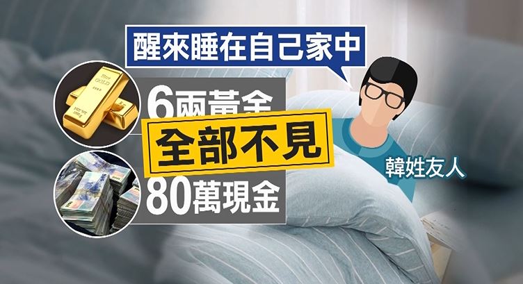 ▼韓姓男子醒來後發現睡在自己高雄家中,屋內6兩黃金以及80萬通通不見。(圖/東森新聞)