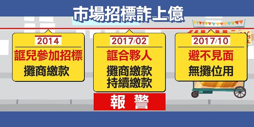 林姓負責人,當時擔任竹市攤販協會理事長,在2014年跟多名攤商,說兒子會參加竹蓮市場招標,攤商陸續繳款,到了2017年卻是對手得標,誆騙大家因為他們是合夥人,所以錢可以放心交給他們,直到同年10月準備開放,才發現根本沒有攤位可用大家急忙報警。