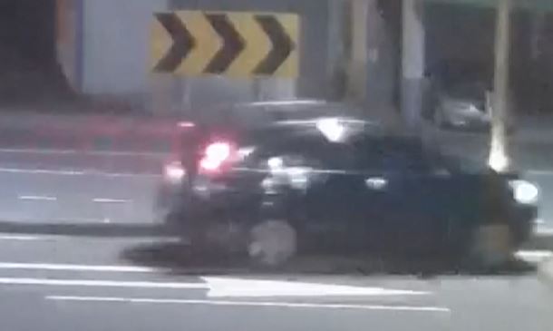 清晨四點多天還沒亮,黑色休旅車開在快車道,突然衝上中央分隔島還撞到一根路燈,把燈趕硬生撞倒,整台休旅車卡在分隔島上,前保桿撞掉,裡頭安全氣囊也爆開,至於被撞斷的燈桿,整支橫跨在對向車道所幸當時車流量不大。