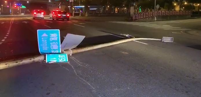▼撞斷這支路燈,恐怕要賠償30萬左右。(圖/東森新聞)