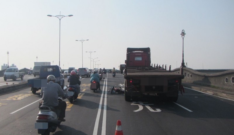 霧峰警局表示,這起車禍發生在26日下午3時許,44歲黃姓男子駕駛半聯結車由新仁路直行,準備開上內新橋時,突然聽到碰撞聲,下車查看發現左後輪輾過一輛電動輔助自行車,造成胡姓姊妹受傷,2人一度受困輪下,騎車的姊姊還被車輪輾過,因顱骨骨折、顱內出血,加上手腳骨折,傷勢十分嚴重,目前仍在加護病房觀察,院方並開出病危通知,而後座的妹妹全身也多處擦挫傷,驚魂未定。