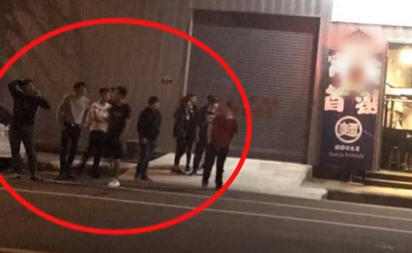 ▼10多名男子聚集在台中一家拉麵店外頭。(圖/翻攝自黑色豪門企業臉書)