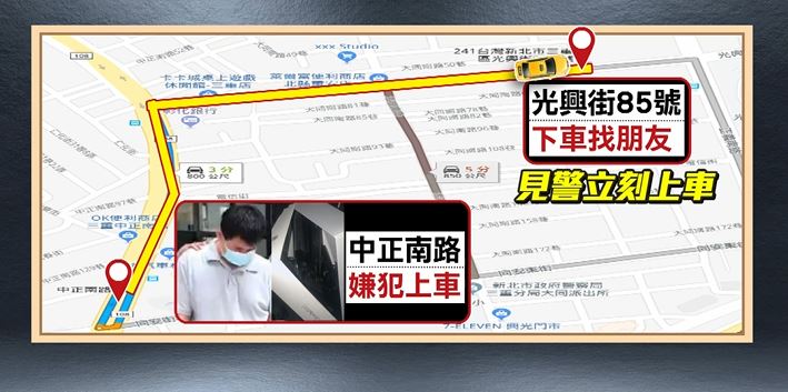 三重分局光明所長劉圳鎮:「剛要下車的時候,發現巡邏員警,所以才會催促計程車司機,不要停車,然後繼續往前開。」