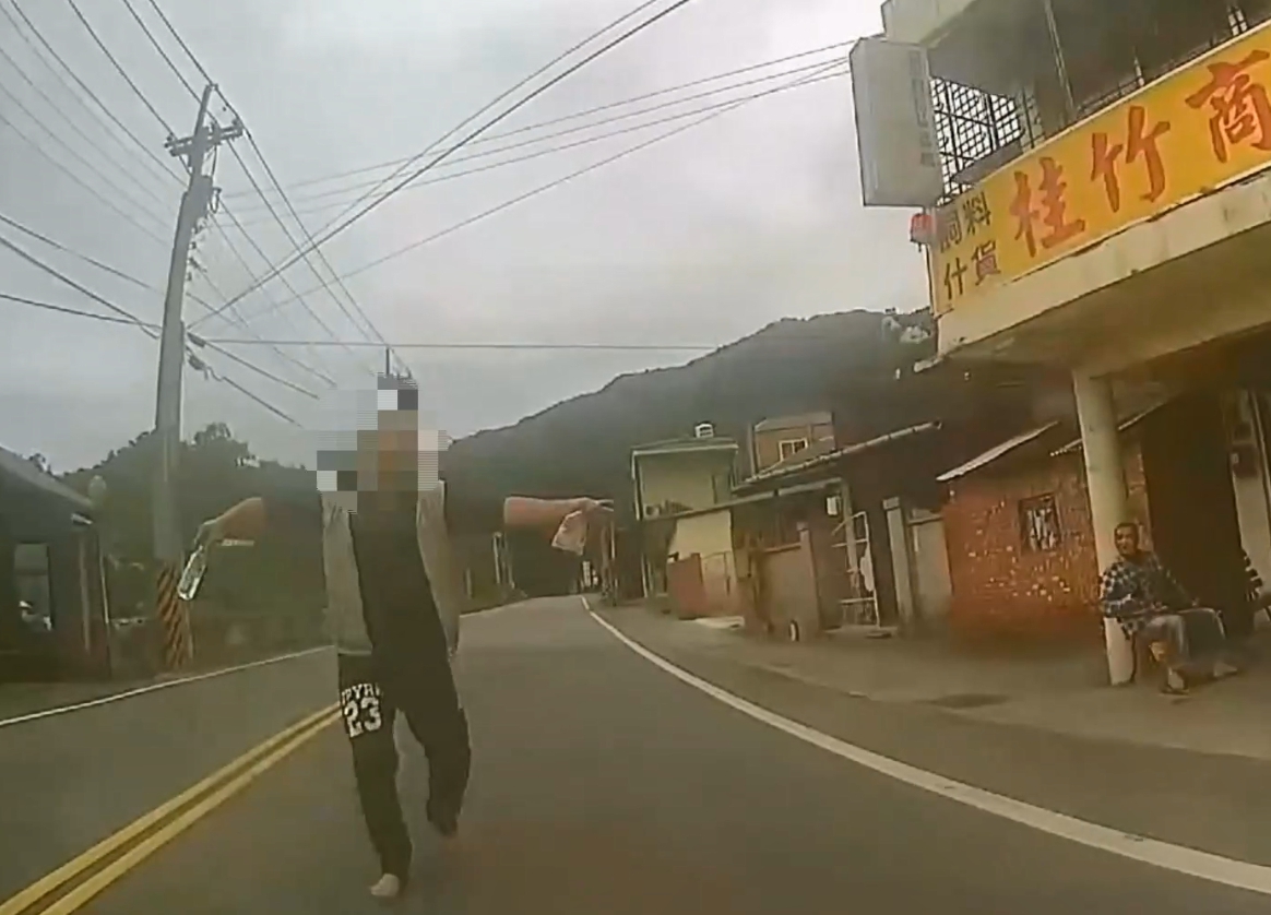 一名男子突然走到馬路上,大開雙手,騎士見狀趕緊放慢速度,最後停了下來,沒想到這名男子直接躺在地上,不斷說著他被撞到了。