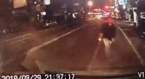 ▼救護車行駛途中,遇到一名男子走上前拍打救護車(圖/東森新聞)