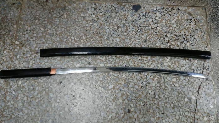 替兒子尋仇不成,反而遭警方逮捕,昨(30)日晚間7點多,民眾看到一名男子持武士刀在大街上,嚇得趕緊報案,但警方到場,只看到男子喝的醉醺醺,呆坐在地上,問他刀子在哪?為何帶刀?他說話不清不楚,最後才說,是接了兒子電話說和別人吵架,才會氣得帶長50公分武士刀出門,但到場沒看到兒子,自己反而被警方帶回送辦。