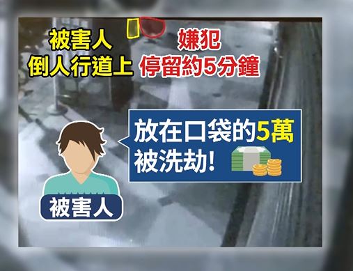 37歲的楊姓嫌犯是市場攤商,就這麼剛好被害人路倒在那,過程中只有他停留在被害人身邊,約5分鐘時間後來被害人,口袋裡的5萬就不見了,警方不採信他的說法,將他依法送辦。