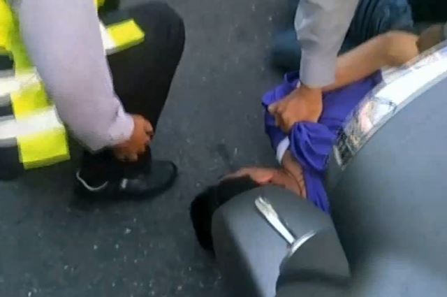 警車聲響伴隨鑼鼓敲打,廟會繞境又起了衝突,幾名紫色上衣男子,被快打警力壓制在地,仍不斷吼叫。發生打架衝突,情緒激動,為了避免失控,警方趕緊將人上銬,鬥毆現場,一名男子被打到頭破血流送醫,經急救後並無大礙。