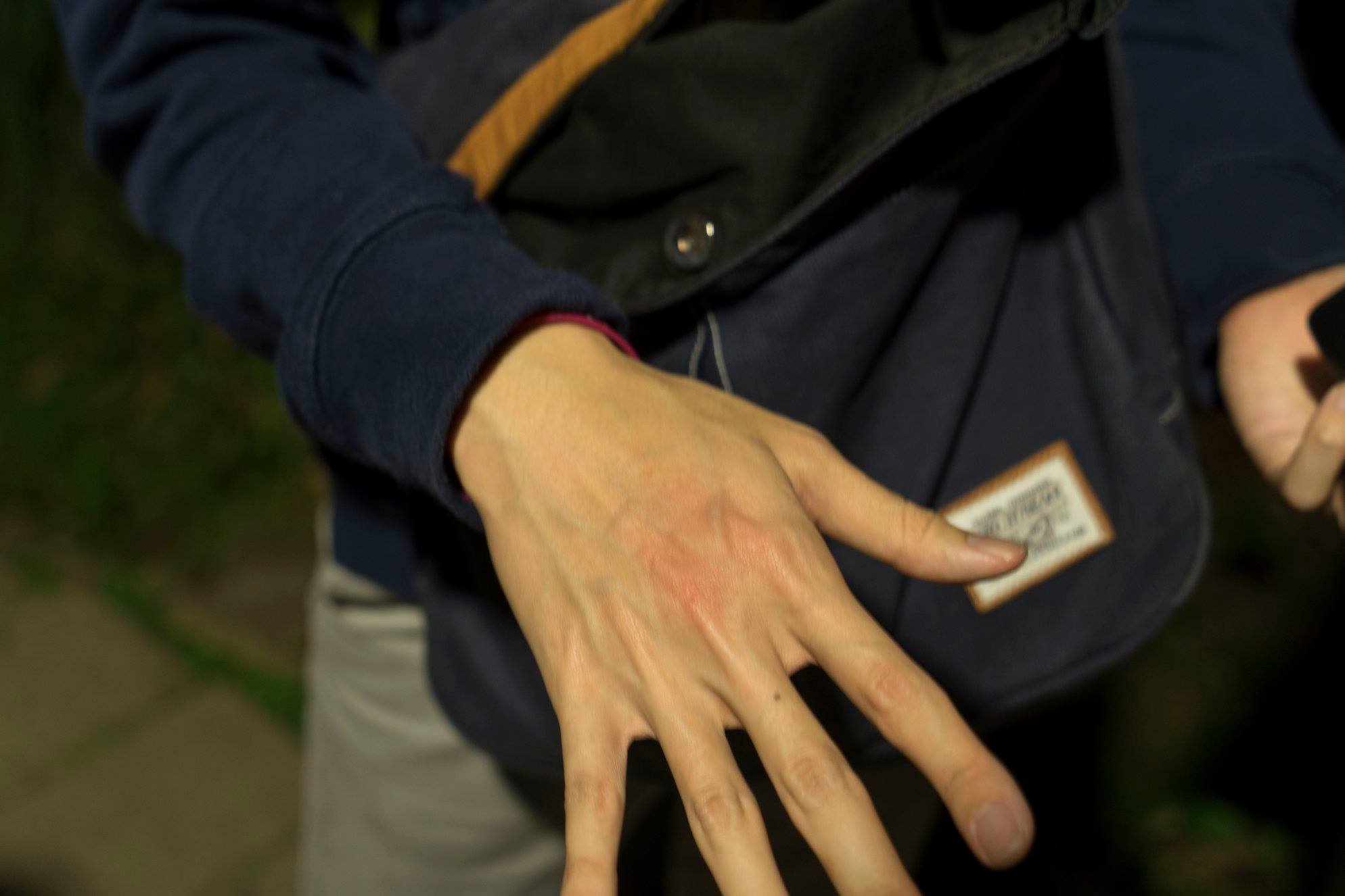 ▼男生的手被搶匪抓到變紅。(圖/翻攝自《信義區三兩事》臉書)