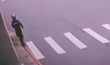 一早六點多,騎士連安全帽都沒脫,就在路邊看似在畫些什麼,短短約15秒鐘轉身離開現場,這舉動還因此被警方找上門。