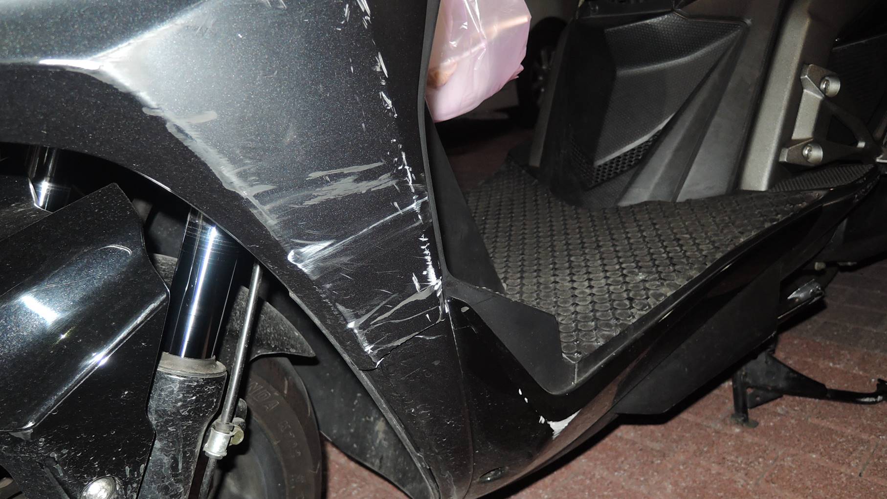 ▼機車上的擦撞痕跡。(圖/台中市政府警察局第三分局提供)