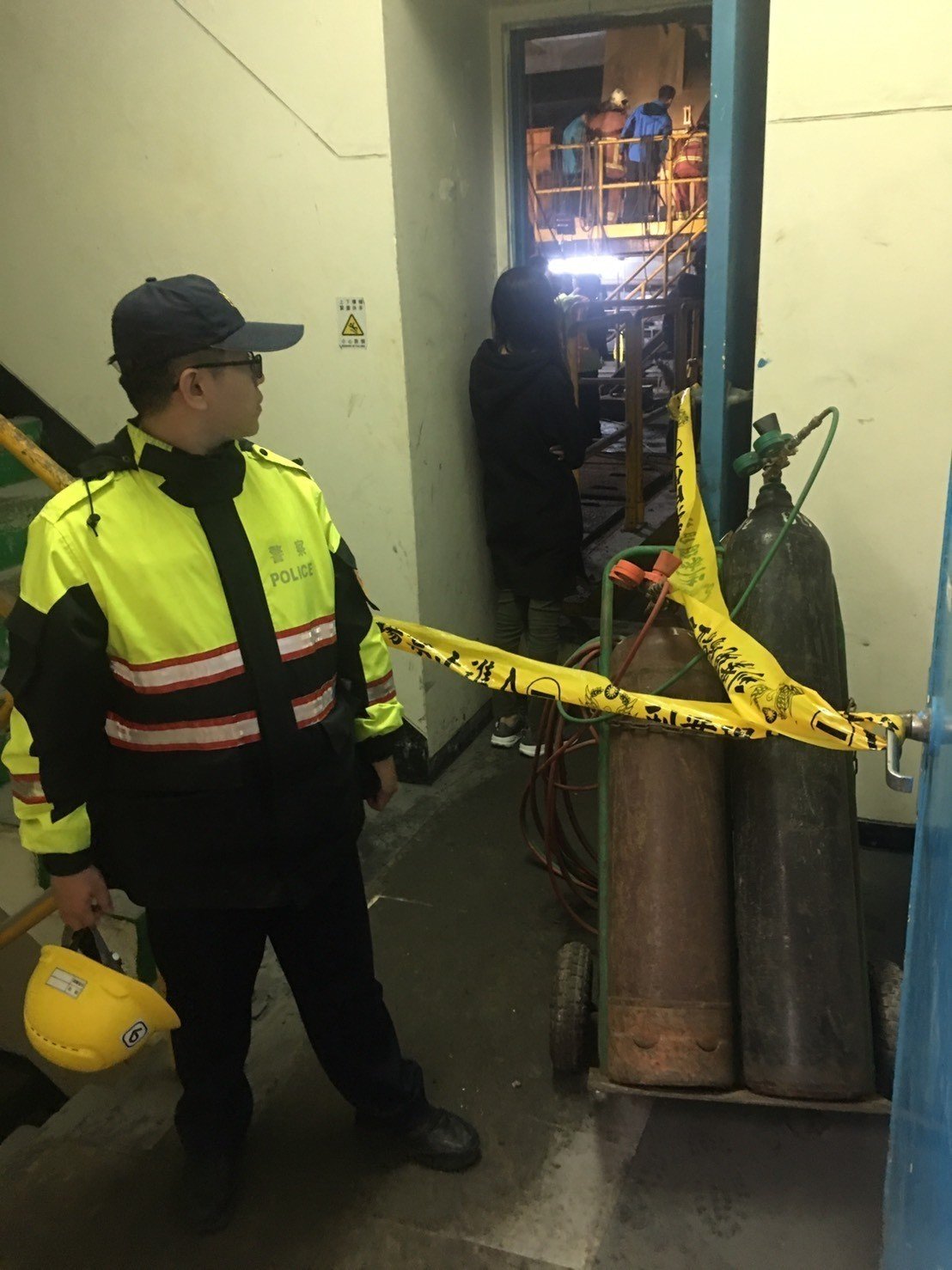 消防人員據報前往搶救,從另一側進入管道間,發現男子的肢體破碎、血肉模糊,已經外科OHCA(無呼吸心跳),明顯死亡,因此沒有送醫。後續交由員警處理與調查死者身分、事故原因。