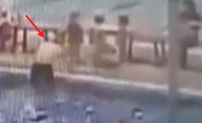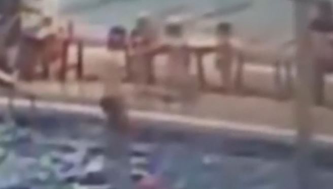 ▼後方泳池突然出現一名男子,伸手掀開一旁四歲女童的泳裙。(圖/東森新聞)