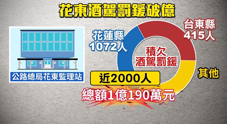 ▼公路總局花東監理站統計,花東地區近期積欠酒駕罰鍰的人數竟然有接近2000人。(圖/東森新聞)