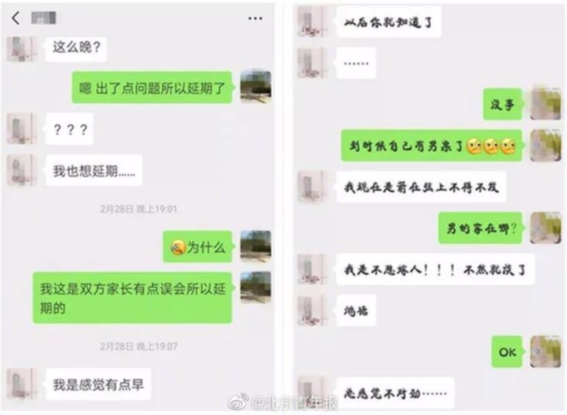 根據《北京青年報》報導,男子4月12日偷偷潛入女子家中,趁女子的家人不在時,對她痛下殺手,還在女子死亡後將其肢解,並致電女子的母親,自首「我殺了她」。用菜刀狠心狂砍數十刀並肢解的行為,令人不寒而慄。事發之前,嫌犯還曾在與朋友聚會時,稱「就算她退還禮金,我還是會殺了她」。