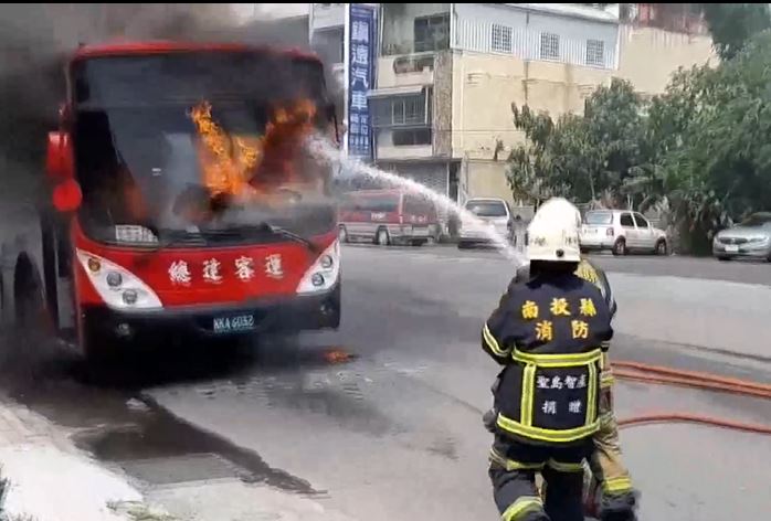 南投發生客運火燒車意外!一輛載有5名乘客的客運,行駛到一半引擎突然起火,司機發現立刻停車疏散,車內乘客急忙逃生,隨後就竄出大火,燒毀車頭,當時後方有駕駛嚇得不敢經過,把車停在路中央,被後車撞上,釀成連環撞,幸好都沒人傷亡。