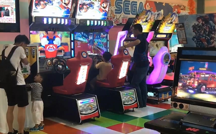 ▼孩童看到遊戲機台衝過去想玩,卻被紅龍給勒脖。(圖/東森新聞)