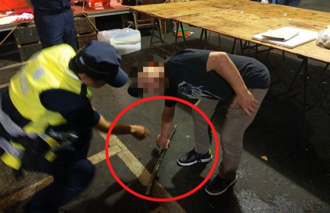 記者吳欣倫:「嫌犯說他酒喝多了,行經廟會前面,聽到有人跟他嗆聲,因此他氣的回家拿武士刀,要跟對方理論。」