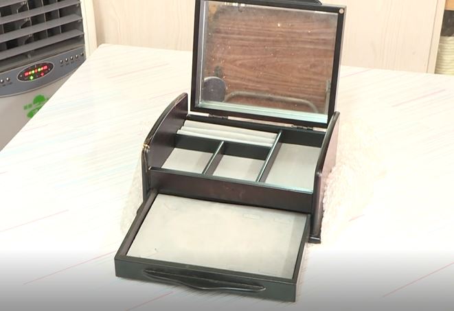 ▼打開木製珠寶盒仔細檢查,確定沒有可疑物品。(圖/東森新聞)