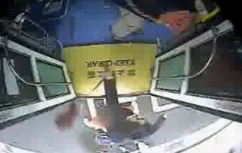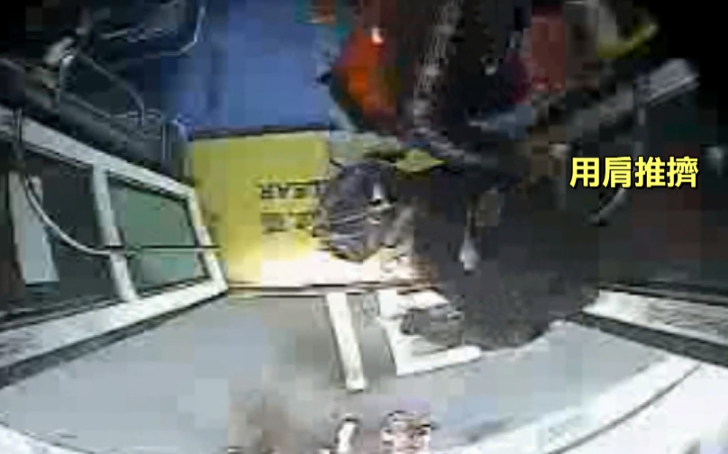 公車停靠,大家原本守秩序上下車,卻有名男子先插隊之外,居然擠向右邊要下車的婦人,甚至用手肘和肩膀的力量,一把將她推出車外,當時婦人抵抗不了,整個人從車內摔到車外,一旁的友人上前制止,婦人也吞不下這口氣,用雨傘攻擊對方,男子也不管司機準備開走,居然還出腳踹對方,其他乘客看不下去,立刻請司機打電話報案。