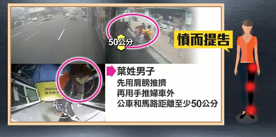 事發在台北車站停靠站,由於這裡鄰近商場捷運和火車站,觀光客又多,人潮不少,當天也是許多乘客要搭上公車,但推人的葉姓男子卻搶著上車,還用肩膀推人,導致婦人從公車摔到路面,至少50公分的高度,導致婦人左邊髖骨、膝蓋、左腳受傷送醫,氣得她一狀告上法院。