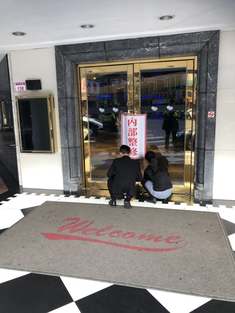 ▼KTV業者今天首次貼出「內部整修」告示牌。(圖/翻攝畫面)