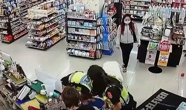 趕到的女警在超商門口,堵住涉嫌偷竊的潘姓女子要帶回派出所,潘姓女子抗拒,猛力撞向綁馬尾的女警,女警衝向落地玻璃,及時用手撐住才沒撞上,二名女警和嫌犯三個人扭打成一團,但是潘姓女子力氣相當大,二名女警想壓制住她,卻被左甩右甩的,情況緊急時。