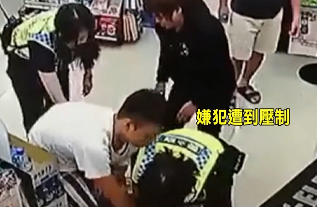 這時超商內外,各出現一位見義勇為的男性民眾,四人要合力壓制住潘姓女子,一群人扭打進超商內,員警向潘姓女子噴了辣椒水,才讓她無法再反抗。