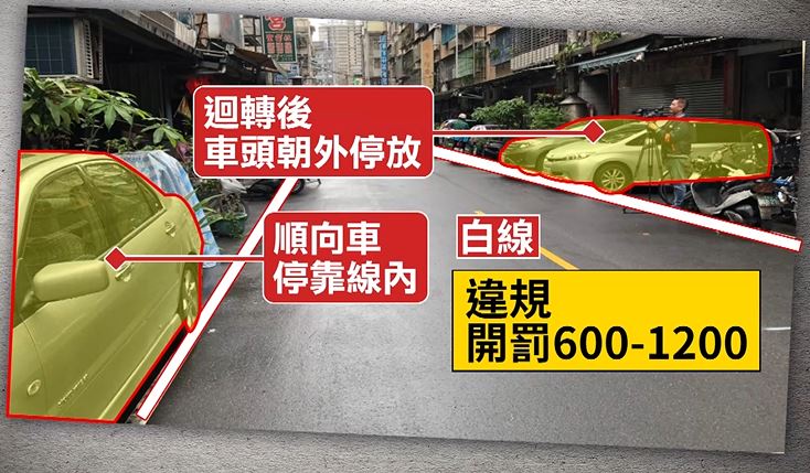 ▼依照法規車子不只要停在白線內,如果是轎車必須順向停靠。(圖/東森新聞)