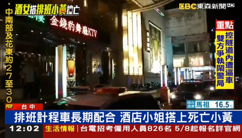 發生車禍不幸喪命的47歲劉姓女子,在金錢豹酒店上班,事發後幹部也立即到場關心,由於在酒店工作都是深夜回家,小姐或幹部如果又喝了酒,幾乎都是選擇搭乘門口排班小黃或是Uber,這次劉姓女子也是搭乘排班計程車,沒想到躲不過死劫。