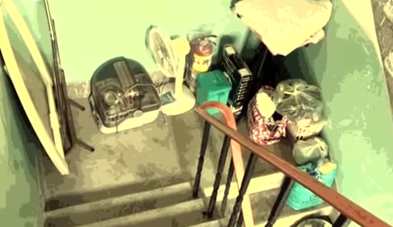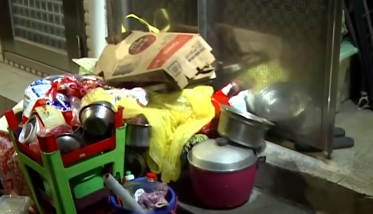 外面下大雨,床板、家具卻丟在門外,淋得溼答答,門口還有鍋碗瓢盆,公寓裡面也堆放許多雜物,民眾拍下一名婦人坐在公寓樓梯,旁邊都是家具和隨身物品,而且家當像是電風扇、桌子、棉被全部沿著樓梯一階一階堆放,擺的到處都是,發文者心疼的說,養兒防老,有用嗎?5月6號阿嬤一直在這邊,環保局、警察局都來過,都無法處理,每天都睡在樓梯間,但阿嬤女兒說話了。